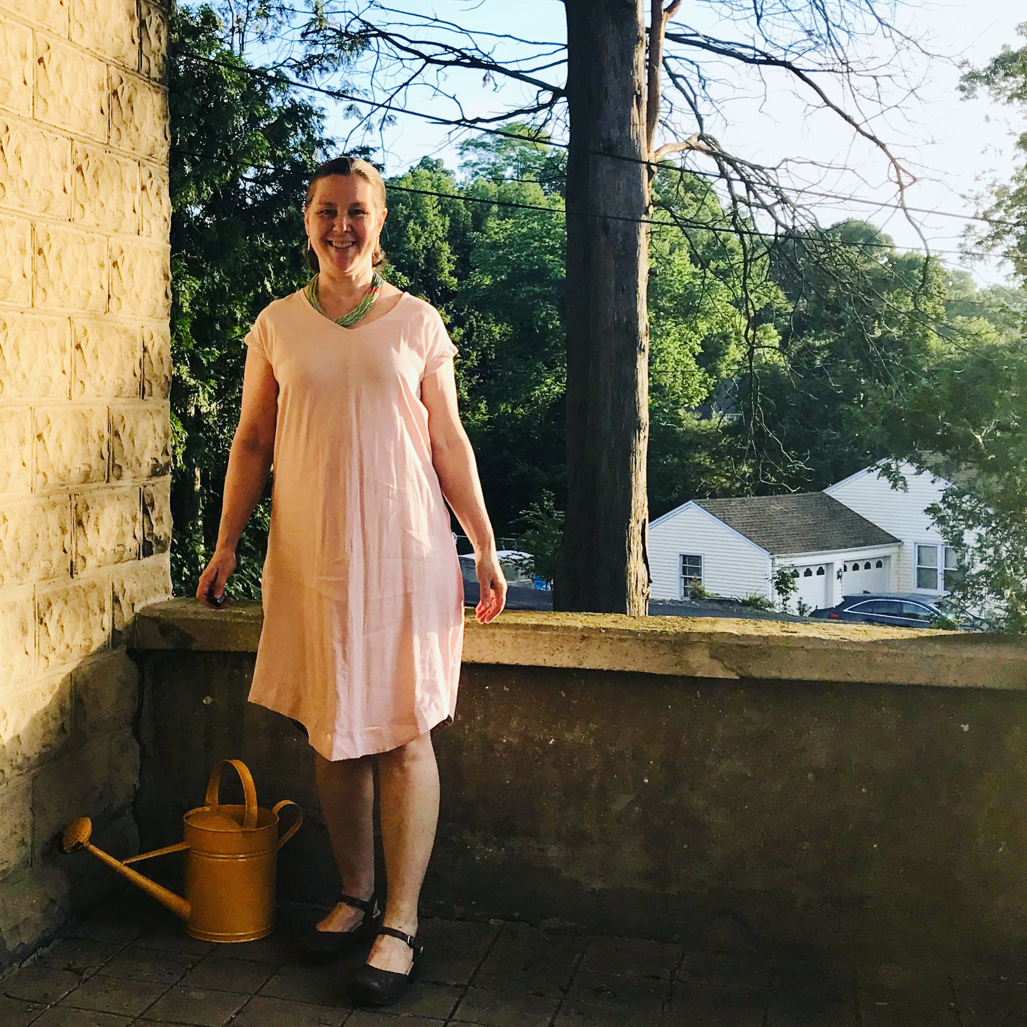 I also bought and have sewed two versions of the Tessuti Alessi Dress. I bought linen fabric for this from Blackbird this May. I was doing great with my no-buy year until Me Made May but I only am buying things I plan to use right now. I haven’t gotten the fit exactly where I want it yet but I have a 3rd version planned and I think after that I will have nailed it. It is a simple pattern and an easy sew. I made version two in literally two hours. I found that it runs big and when I sewed version one below, I just kept sewing inside my sewing lines to narrow everything down. I almost had it but I wanted the dress itself to be slimmer, a change I made with version two.