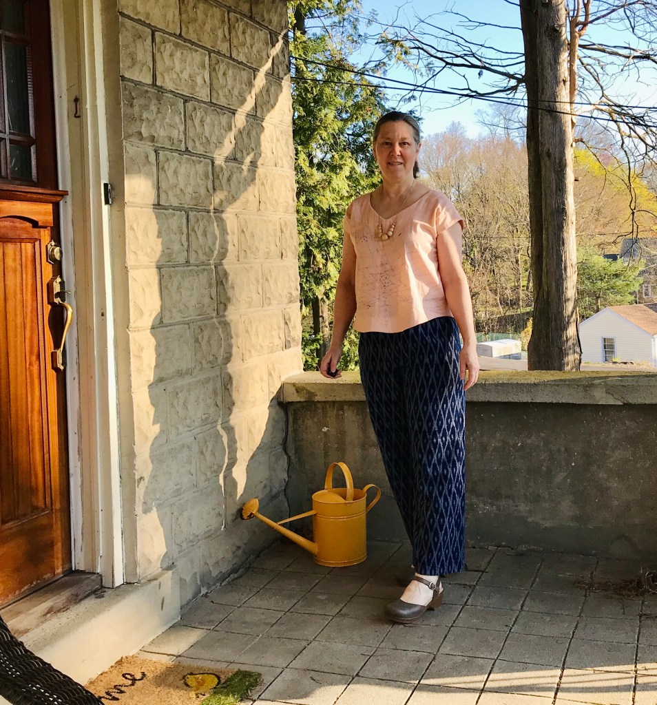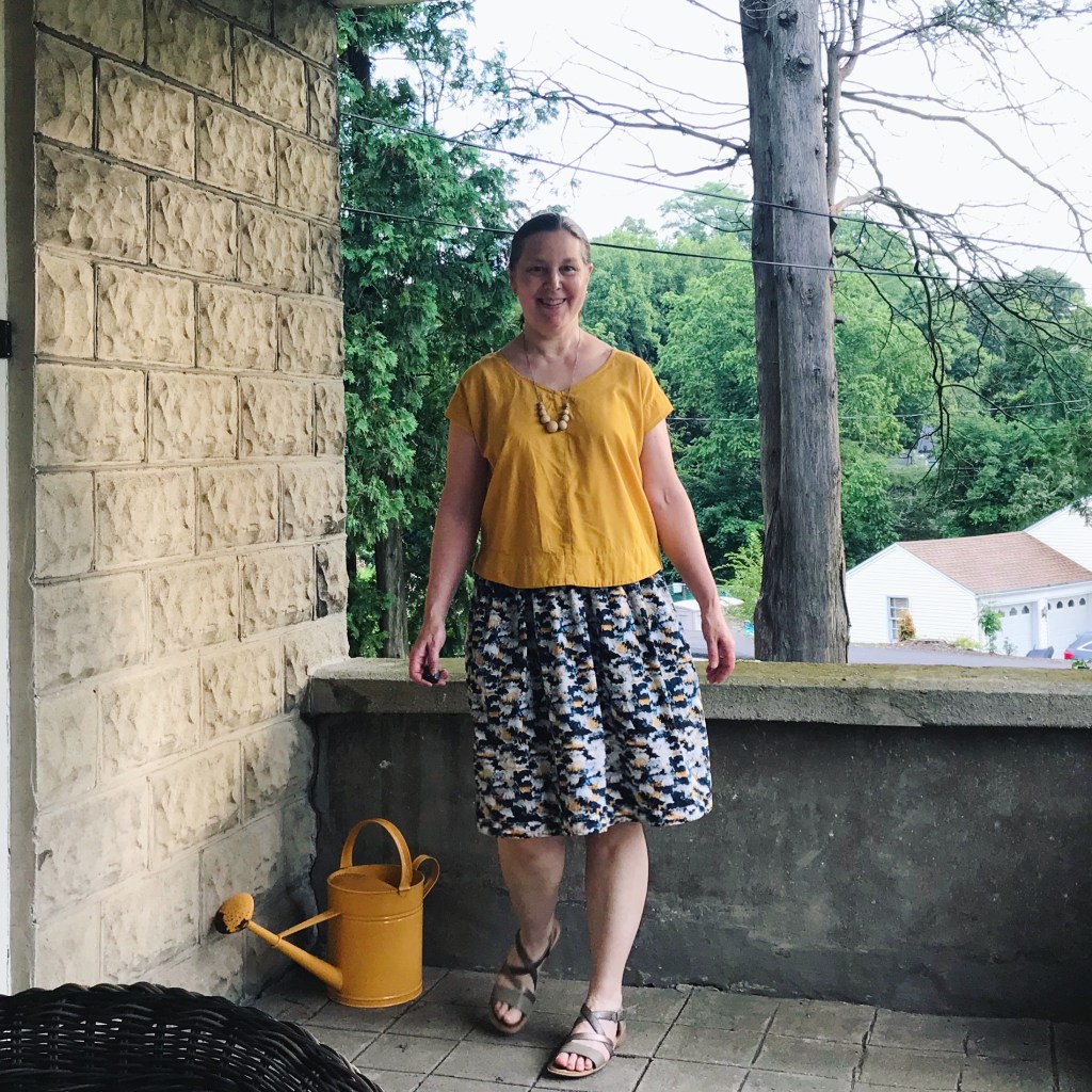 Loominous Dress first blogged about hereand as cropped, I wore this all last summerLinen-Rayon blend first blogged here I dressed it up and dressed it down. Wore all last summer. love this dressLiberty facings for the win 🙂Slubby Chambray topI love how the texture of this fabric shows off the bias designas worn. wardrobe workhorsewith leggings and a Helen’s Closet Blackwood Cardigan while working from home, early pandemicBlue version of same chambray fabricworn with MBR Rose pantsLinen-Rayon blend with contrasting facings due to fabric shortageas worn, Me Made May 2020with Made by Rae Cleo skirt. My facings on this version were a bit wonky due to pandemic shortage-no interfacing. Had I had interfacing and followed Rae’s instructions, they would be neater as they are in the grey version but I was in make-do mode. I still love and wear this version. with Made by Rae Luna pants-I love this April Rhodes fabric-quilting cotton for the win!Double gauze version. I didn’t sew the double gauze versions on the bias. I actually sewed them on the fold that they are just fine. With Made by Rae Rose pants. White Double Gauze-worn all the time-with Made by Rae Rose pants