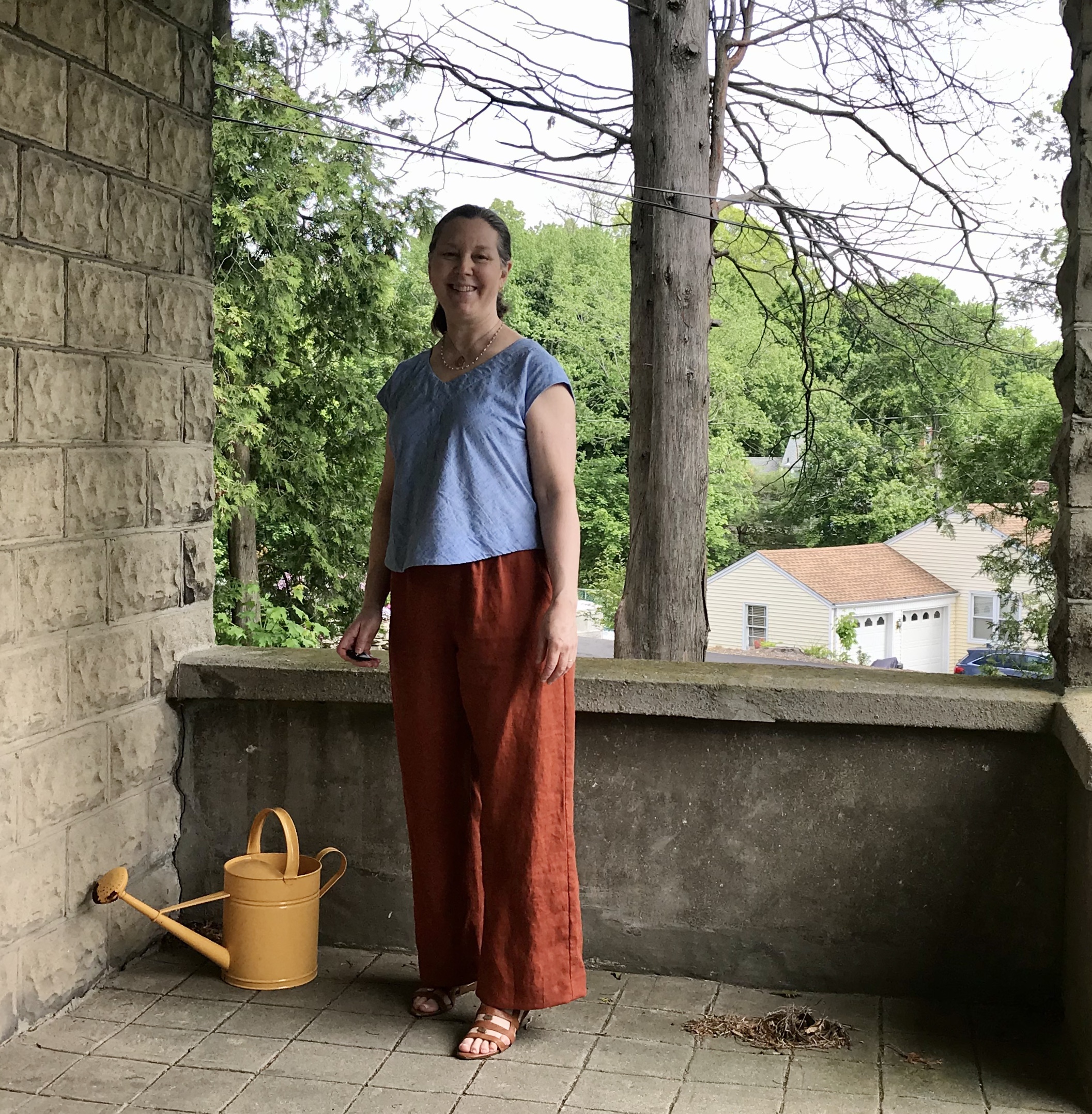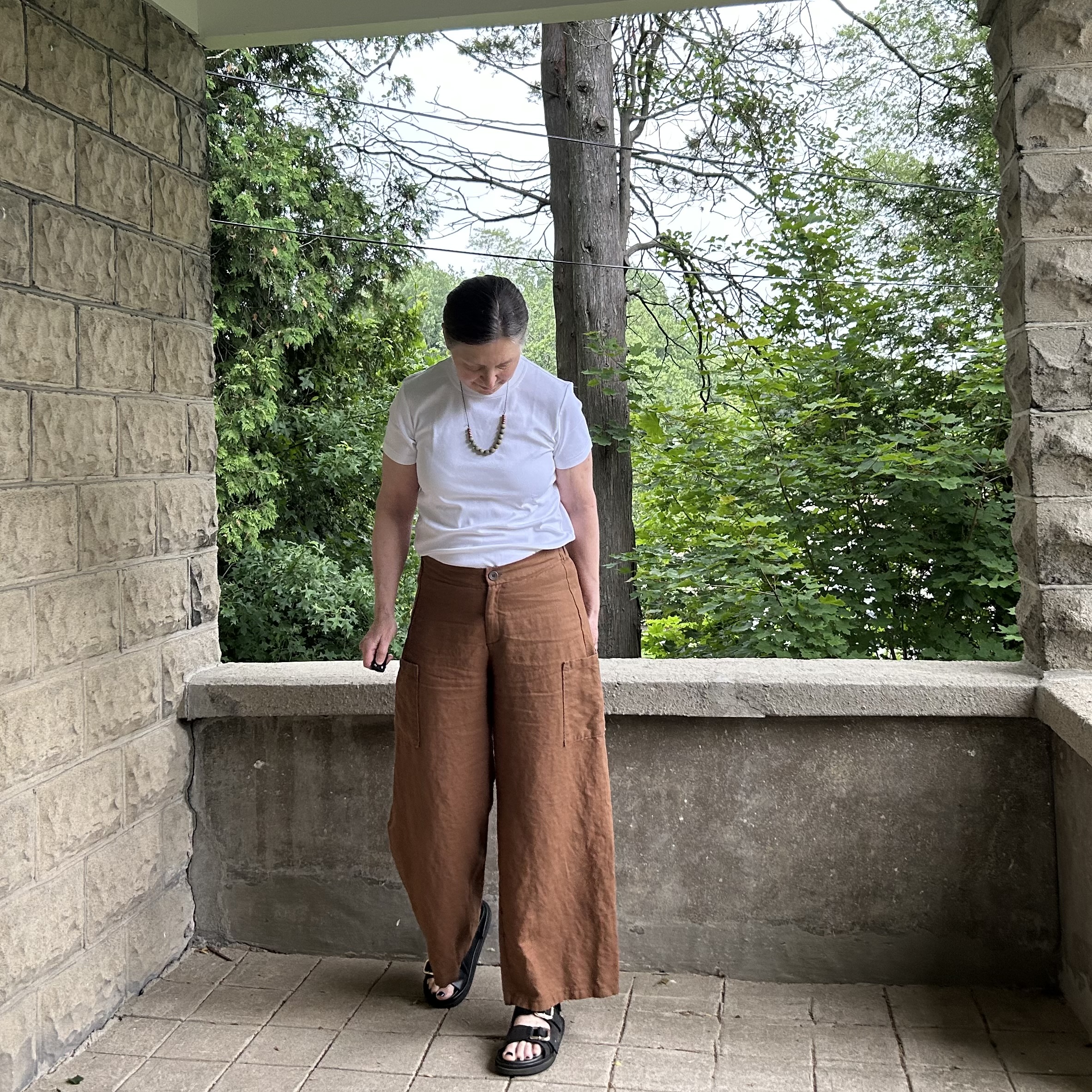 I also sewed the Friday Pattern Flaneur pants on a whim. I decided to just sew the pattern based on my measurements as drafted, as I did with the Chloe’s, and they fit great. I sewed them with a medium weight brown linen that I bought several years ago from Blackbird Fabrics and have been wearing them all summer. I have several more of these planned.