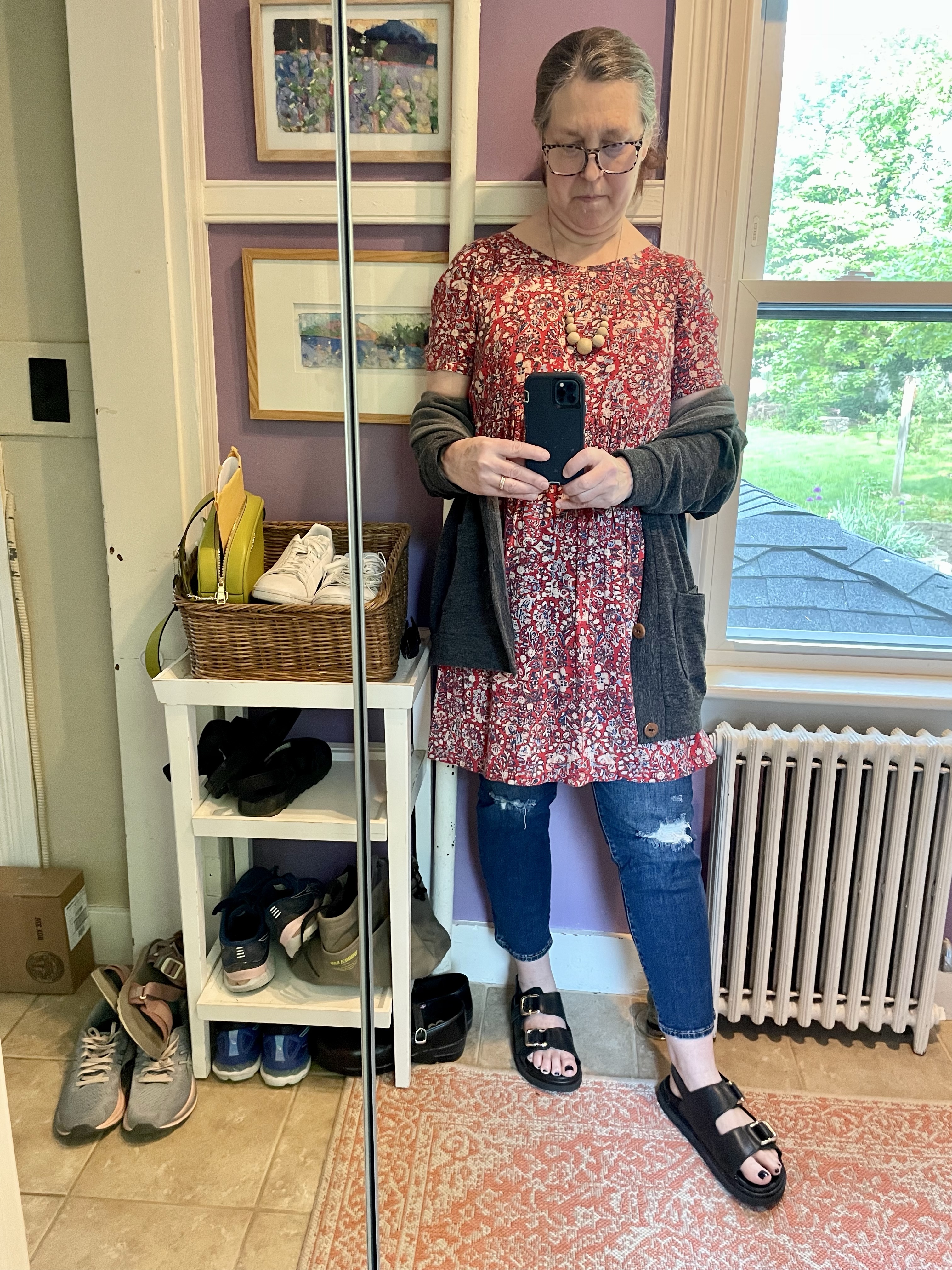 but have gotten overwhelmed by the many patterns and large amount of fabric I bought in years past on sale when I was sewing many garments. I basically stopped sewing for much of the last few years and those patterns and stacks of fabric feel overwhelming now and honestly like they are staring at me, a reprimand for overbuying, over-planning, too many ideas. When I briefly thought I had limited time, my initial thought was that I wouldn’t sew one more garment for me-that wouldn’t be my priority. Instead, finishing some long-lingering quilt projects for kids/grandkids would be more important (also organizing and labeling the massive stash of fabric, currently working on that) – but as of today, I am not dying and so in between finishing those quilts (hopefully this year) I want to get back in touch with what I loved about sewing in the first place: getting lost in the process, following the steps, making something I want to wear, not worrying about keeping up with the never-ending more more more-ness of the sewing instagram.
