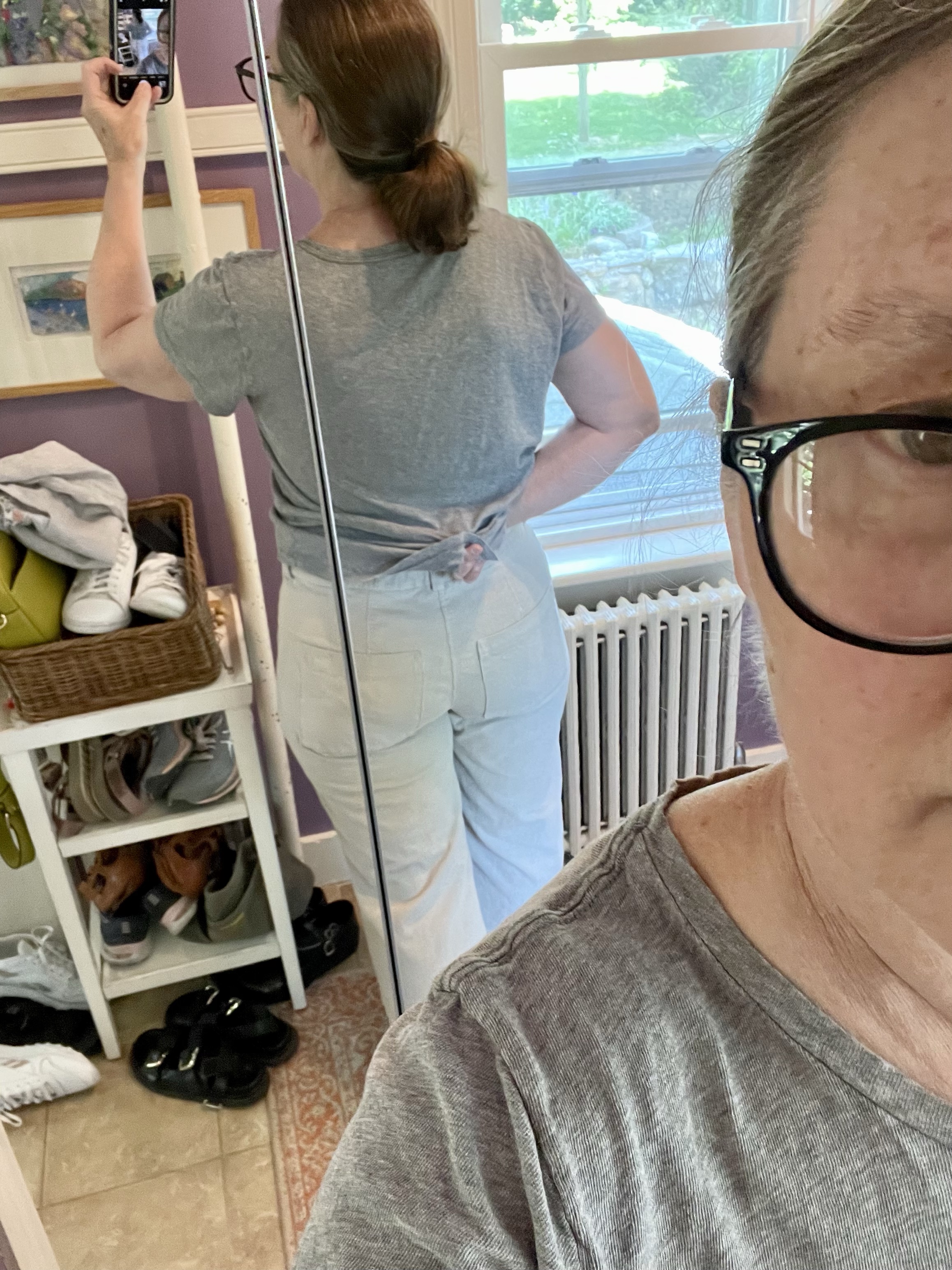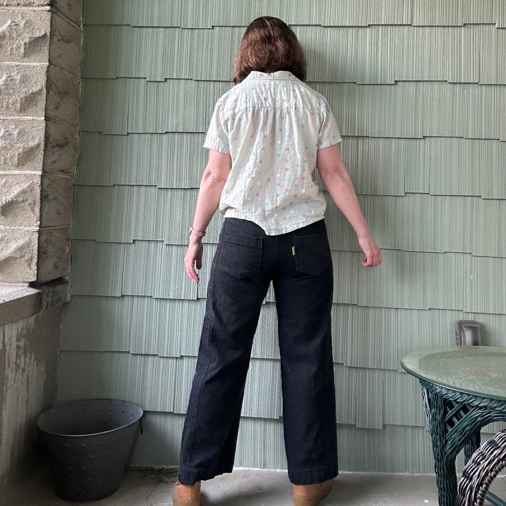 I have been limiting my fabric purchases and it is so helpful to see what you own in the app and match what you have with the patterns you want to sew. I am excited to sew the Made by Rae Sapphire Dress this Summer and the Closet Core Claire shorts and I bought the new Friday Pattern Company pants pattern because I was intrigued by how simple it is. It will either be great or a fail but I am willing to risk trying. I have generally had great luck with the Closet Core pants block so plan to make more Mitchell Trousers and their Rika pants in addition to the Chloe Jeans. Being able to sew pants that fit feels like a superpower (more pants pictures below for good measure. The fit really is great-almost perfect.)