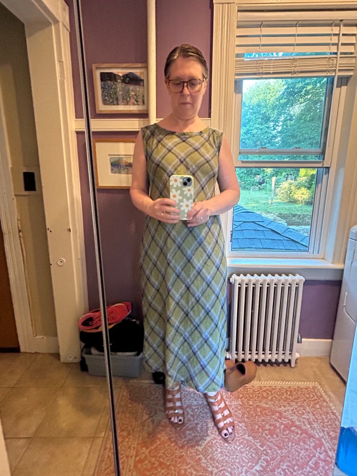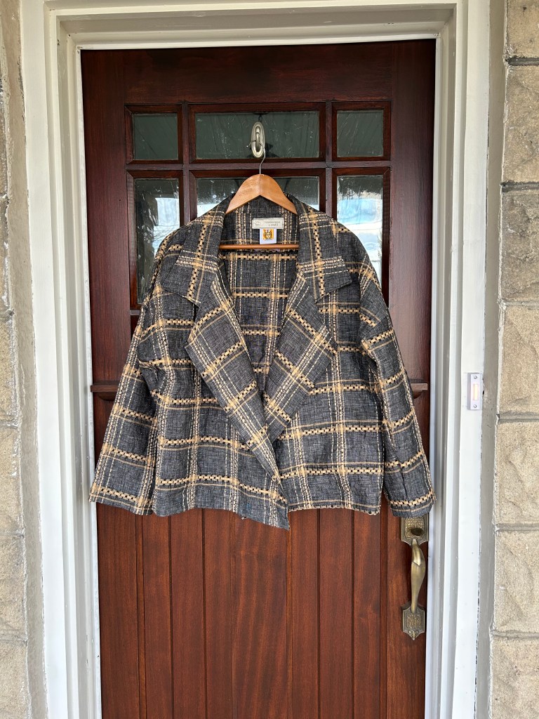 The third WIP I finished this month is a Helen’s Closet Pona Jacket in a beautiful plaid tweed linen that I got in NYC at Gray Lines Linens in the Garment District some time before the pandemic. I cut this project out at least two years ago. I believe that I cut a large based on my measurements. I was happy with the end result but I found the sewing process a bit stressful. Helen uses a creative approach that encloses the seams but it makes it challenging to adjust things along the way. I usually use a hem facing so I can adjust the length at the end and that wasn’t possible here so I followed the directions and prayed. I think it was fine in the end but I might change how I construct it next time. I would like to sew another version in a pink linen from my stash. I wore it when I preached a sermon recently. I preached on one of the healing stories in the Gospel of Mark. If you are interested, you can listen here, starting at minute 40.