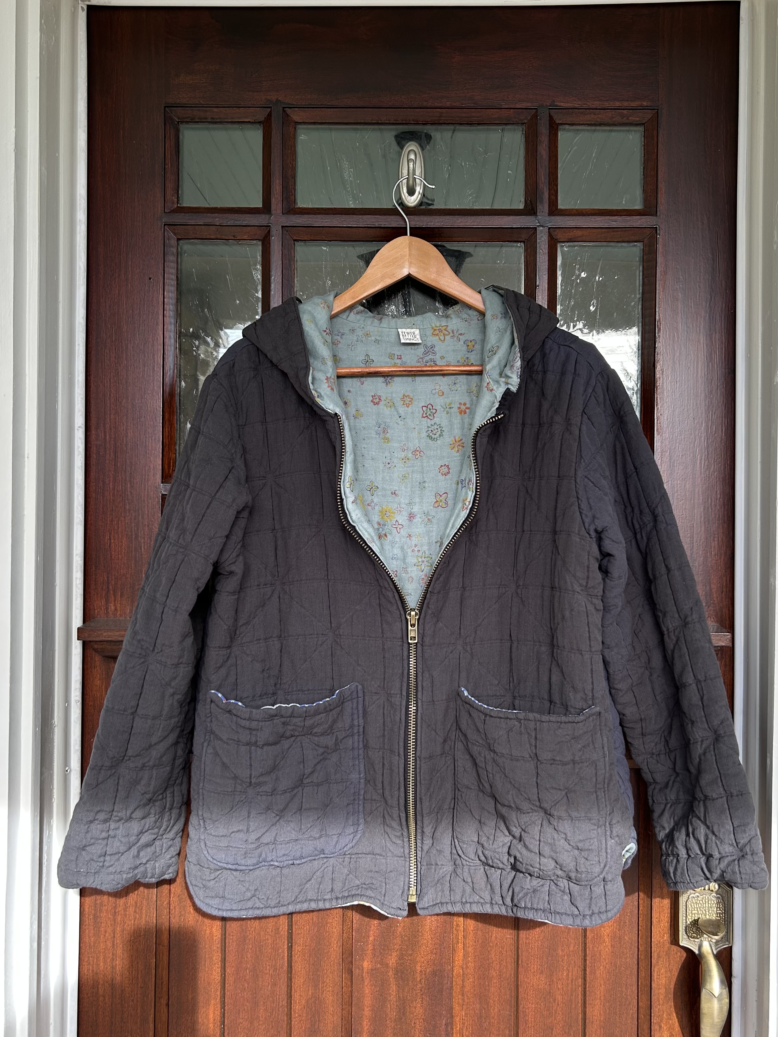 The second project I finished this month is a Grainline Tamarack jacket with a hood and zipper. I used the quilted Merchant and Mills cotton that is all the rage. I went a bit rogue and didn’t use bias binding. It wasn’t an issue anywhere except where the hood met the zipper. But I fudged it a bit and it works well enough and it is a perfect slouchy hoody. This is my third Tamarack but not my last. I love the pattern. I made a straight size 12 which is what I have sewn each time. No adjustments. So comfortable.