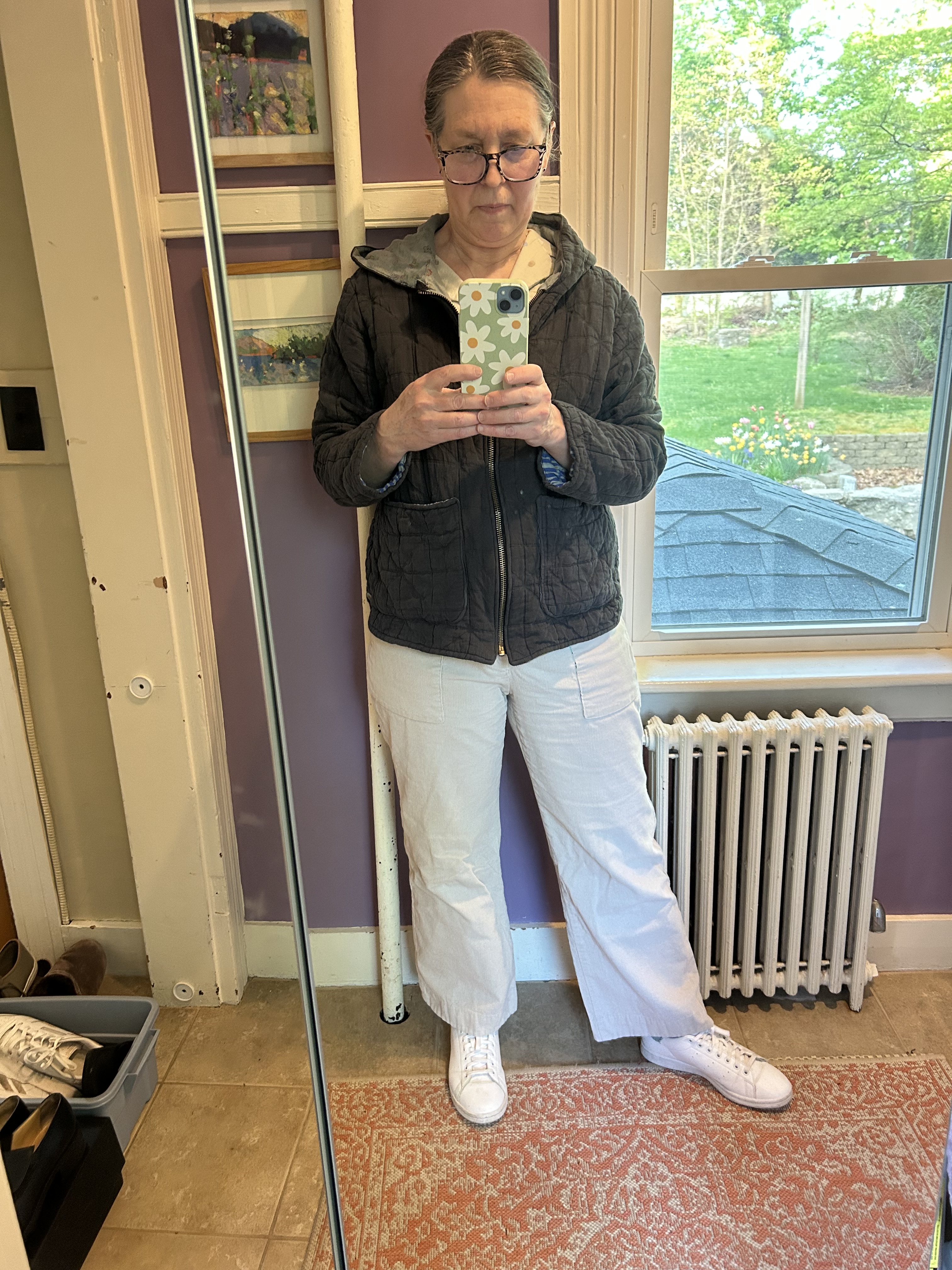 Finally, I sewed a new to me pattern, the Closet Core Chloe Jeans. I love them. I sewed a straight 12. They fit generally great, but the back gapes a bit. I inserted some elastic which helps. I am already sewing a second pair and I am trying a couple of tweaks to perfect the fit. I will report back! I used a black heavyweight denim that I have owned for years. I am sewing a corduroy pair now. Also stash fabric. If my tweaks work, I want to sew a brown denim pair. I tend to sew multiples of the same pattern.