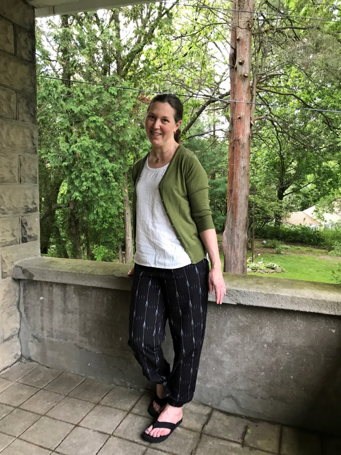It is harder than usual for me to write my year end round up post because I have barely sewn since August and I miss it! But inspired by Helen to join Gillian’s #SewingTop5 post challenge, I am looking back over 2017 and seeing a lot of garments I sewed and wore and love. Five of my #BestNine Instagram posts this year were garments I sewed in 2017: A pair of Luna Pants made with a lightweight woven Ikat fabric and a Gemma Tank in white double gauze which are perfect together: