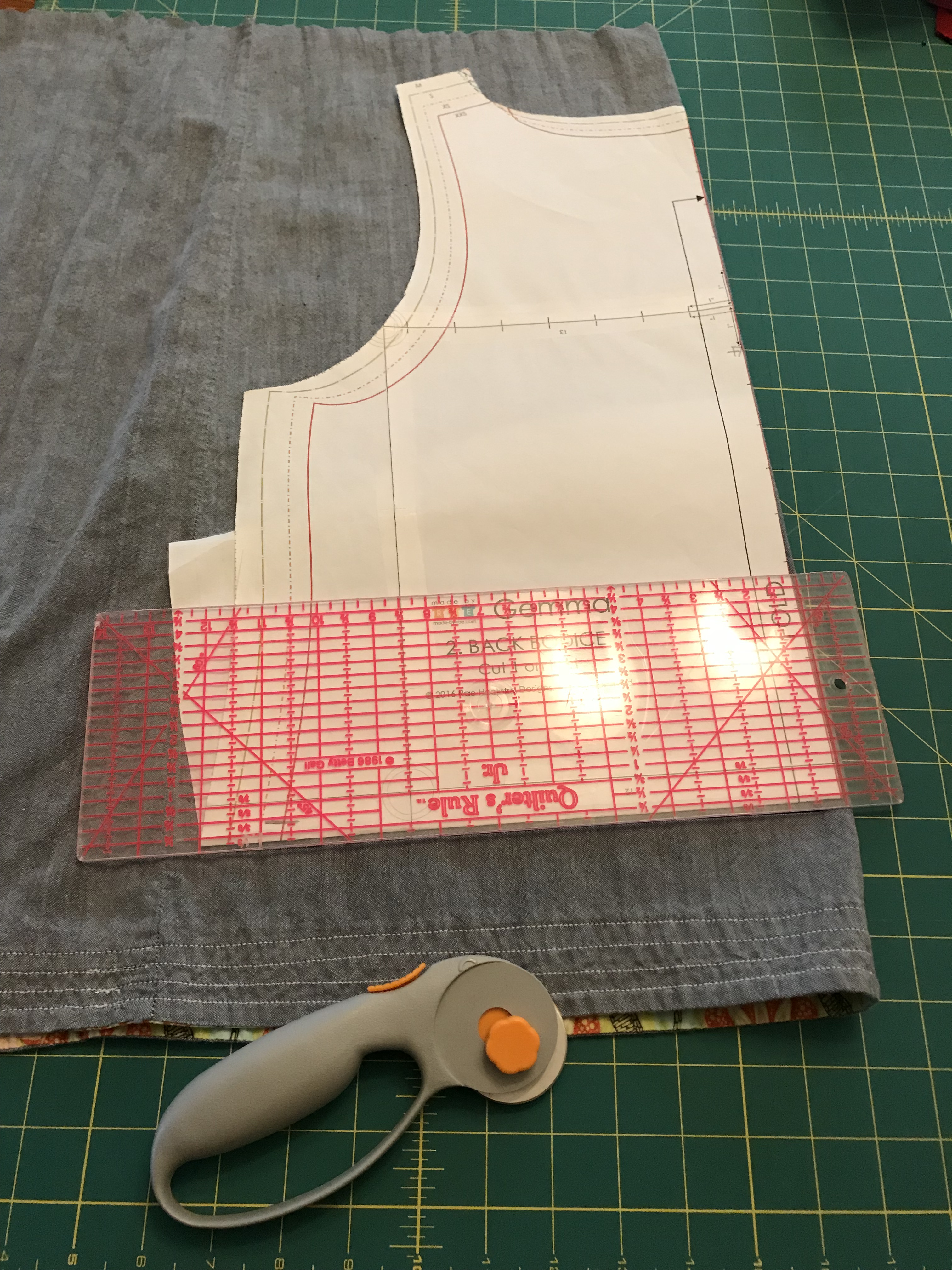 She learned about grainlines and how to lay out the pattern pieces using the cutting layout in the pattern and how to orient them using the grainline arrows.
