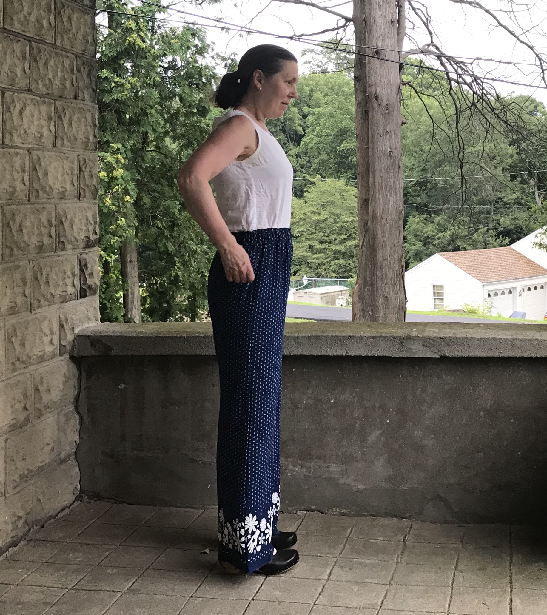and have made myself a fun rayon version using a floral border print. I used a slightly different approach to better deal with the slippery fabric which I posted about here. Here they are worn with my recently cropped Gemma tank. I am loving wearing them.