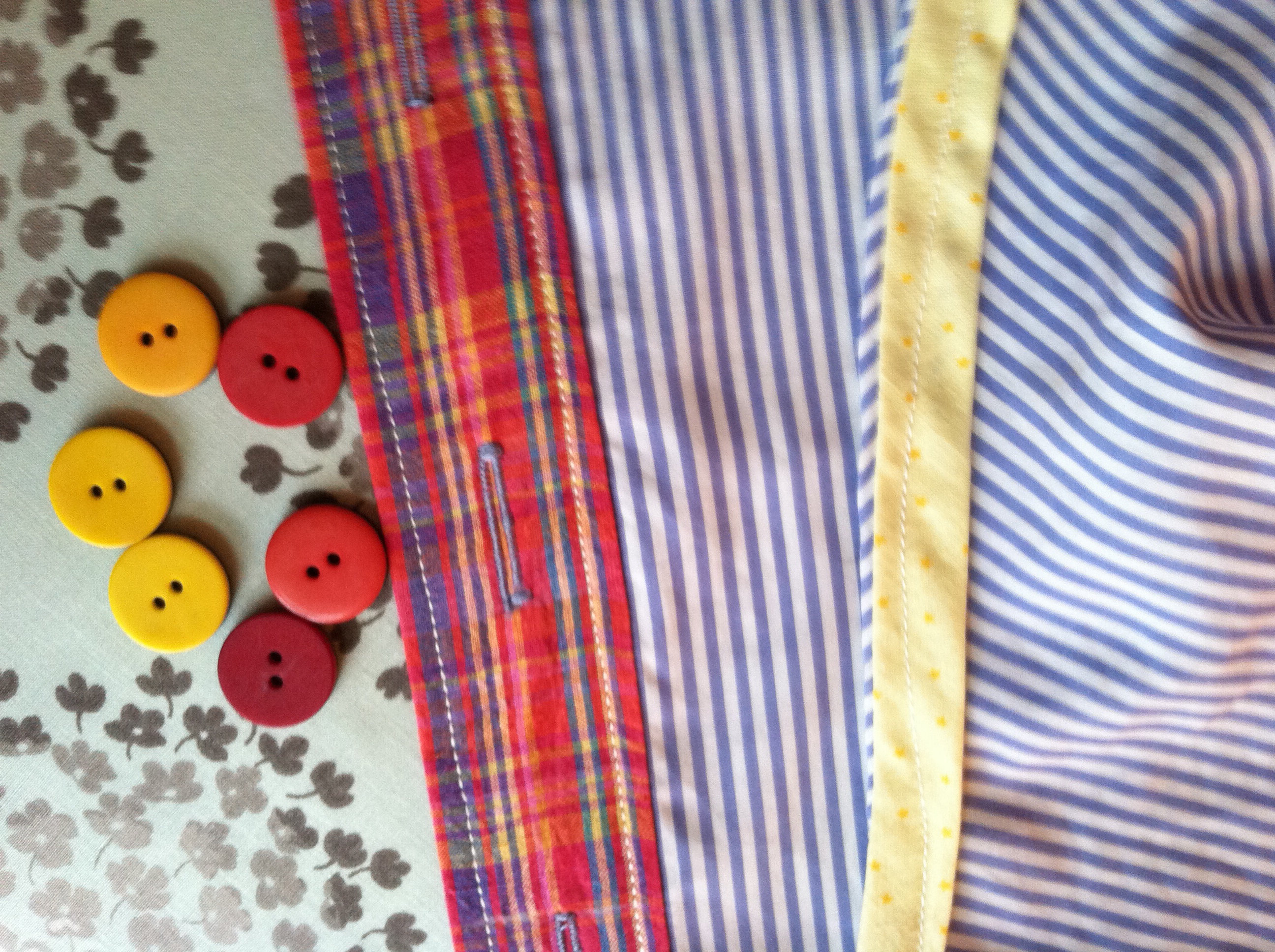 This fabric is a cotton lawn so it drapes well but was really easy to work with. Although I originally planned to use these green buttons: