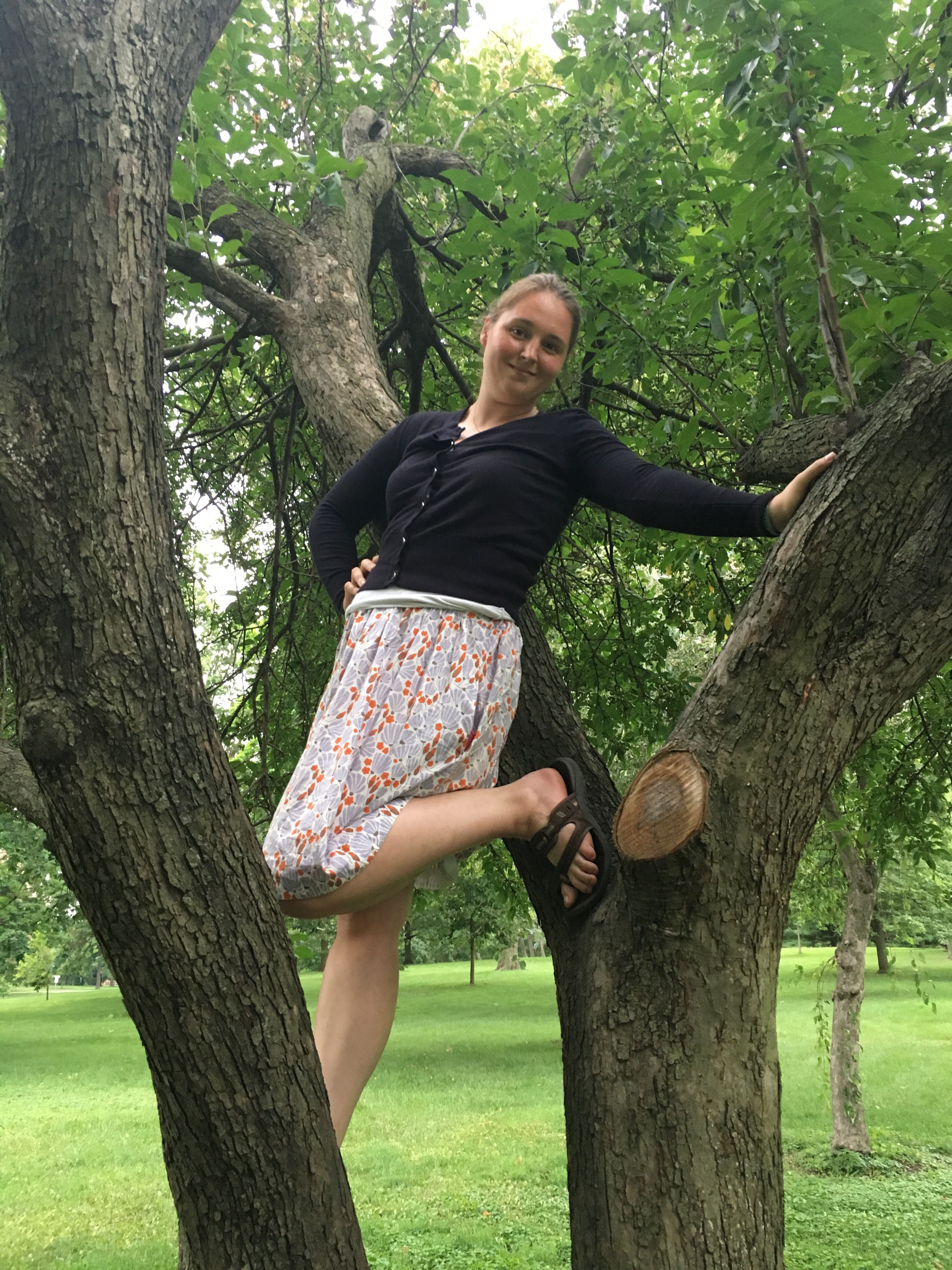 I ended up giving my tester version to my beautiful daughter who had the perfect shoes to match. Here she is during a recent visit to Connecticut.And here she is in a Cleo action shot back in the Midwest. I have a navy cotton lawn version in the works for her in this great Ninepin lawn from Cotton and Steel. I may make version A which is a bit shorter and has great pockets,The Cleo would also be amazing in this double gauze and this rayon.  I think a longer rayon Cleo with boots would be perfect for fall. And the double gauze version Rae made is so beautiful it is tempting to make one just like it. You can see how one can easily be inspired to make So Many Skirts!