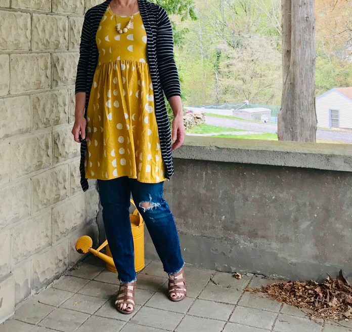 Next up, I sewed the new Helen’s Closet Yanta Overalls pattern. I wasn’t sure how these would look on me because I am all torso but I added about 2.5 inches in total to the length of the pattern pieces across each of the lengthen lines and I am really happy with the fit. I made them loose enough to not need the optional zipper and I can put them on and off leaving the buttons buttoned. When I make them again, I will probably take bigger darts in the back and size down a bit and use the zipper because the back is baggy. I will also add another inch to the back strap below the X of the straps so that the X hits me higher up on the back.