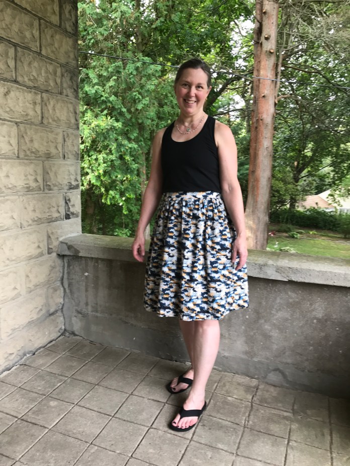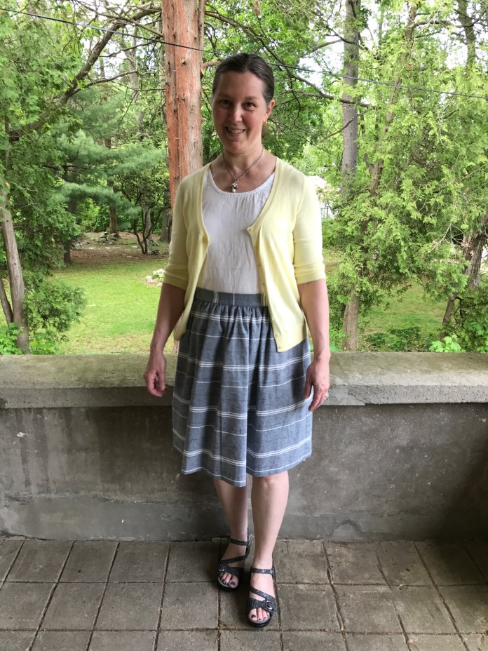 I had altered this Floral Voile Ruby Dress to make it into a blouse during Me Made May since I hadn’t worn it much in the year since I sewed it. I happened to have it in my sewing room and tried on the York over the blouse and realized it was a perfect match for the linen so I used the extra fabric to make bias binding and a hem binding since the length was a bit short and I finished it in time to wear to my stepdaughters’ graduation.