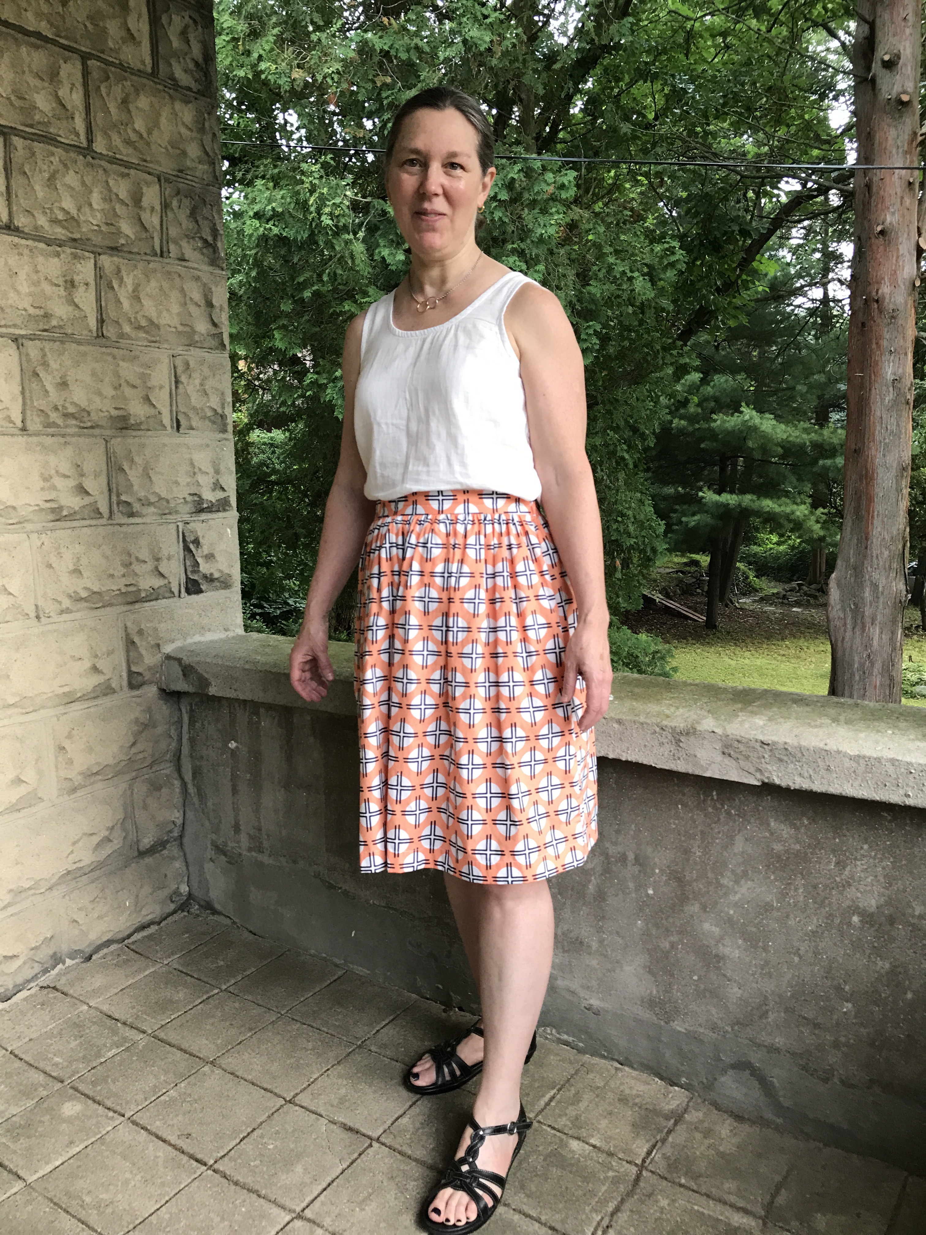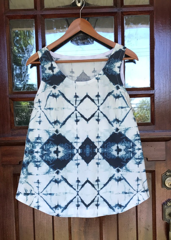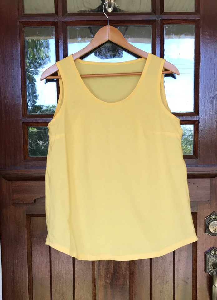 and as worn with my much loved Gemma Tank in white double gauze. It is a little wonky and sack-like but I love it.