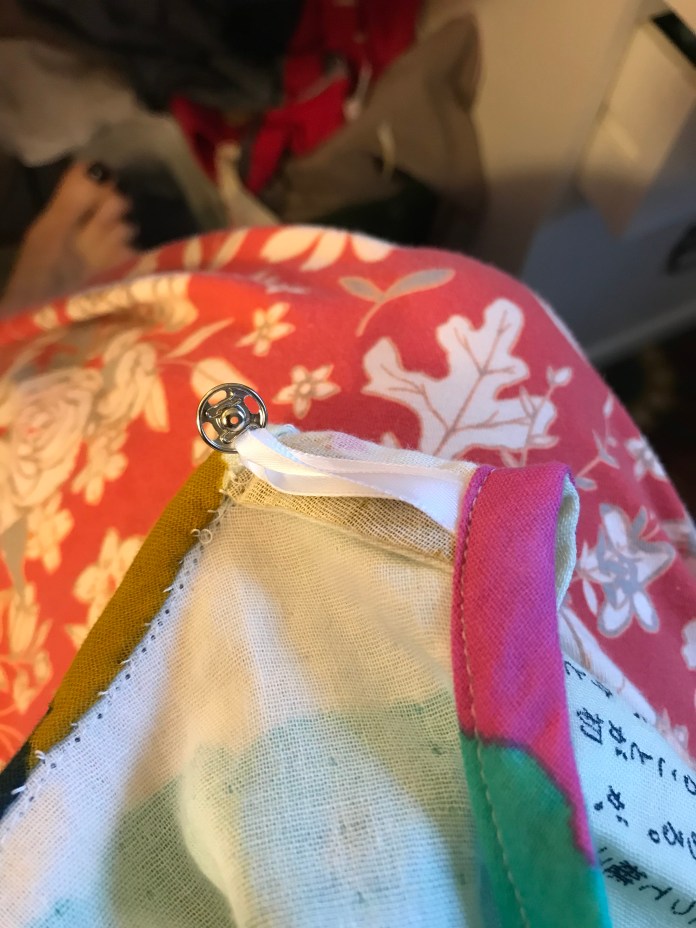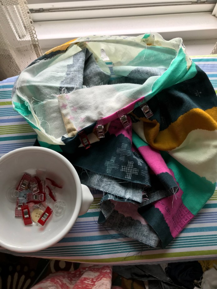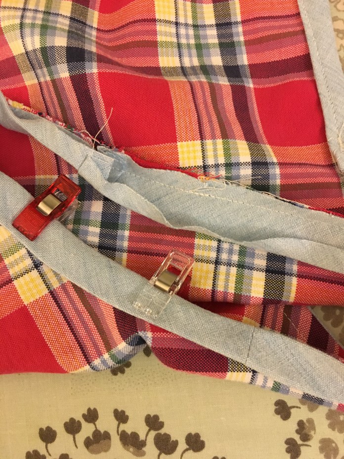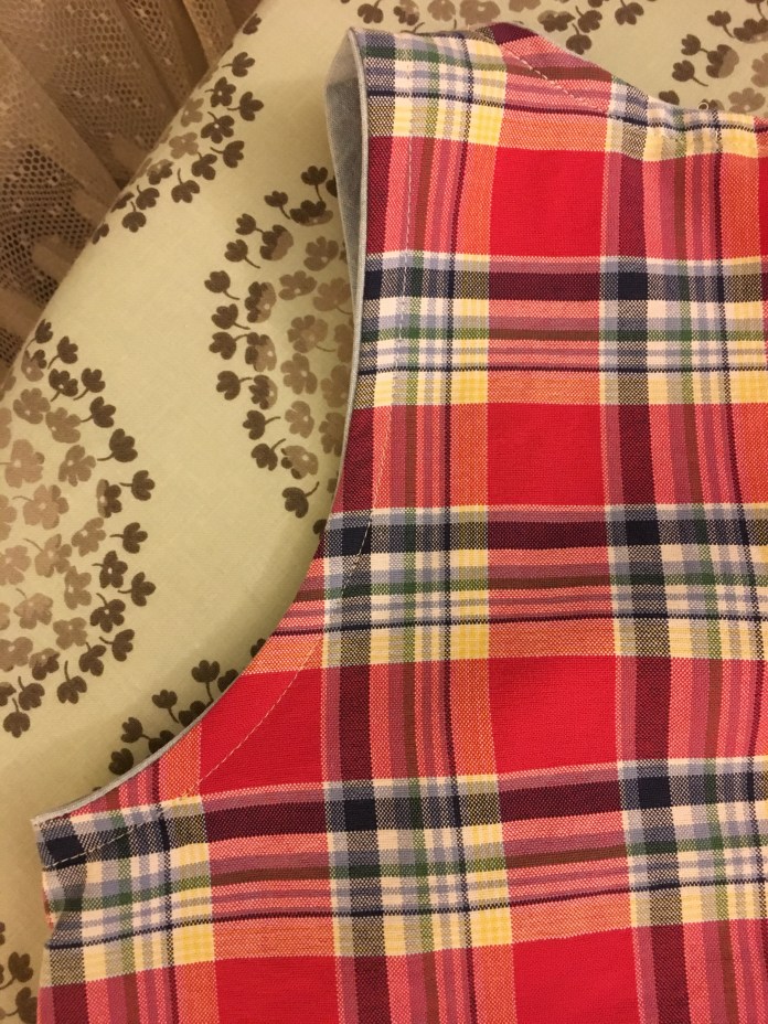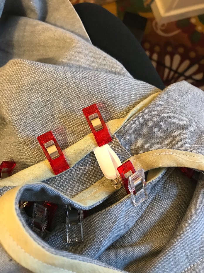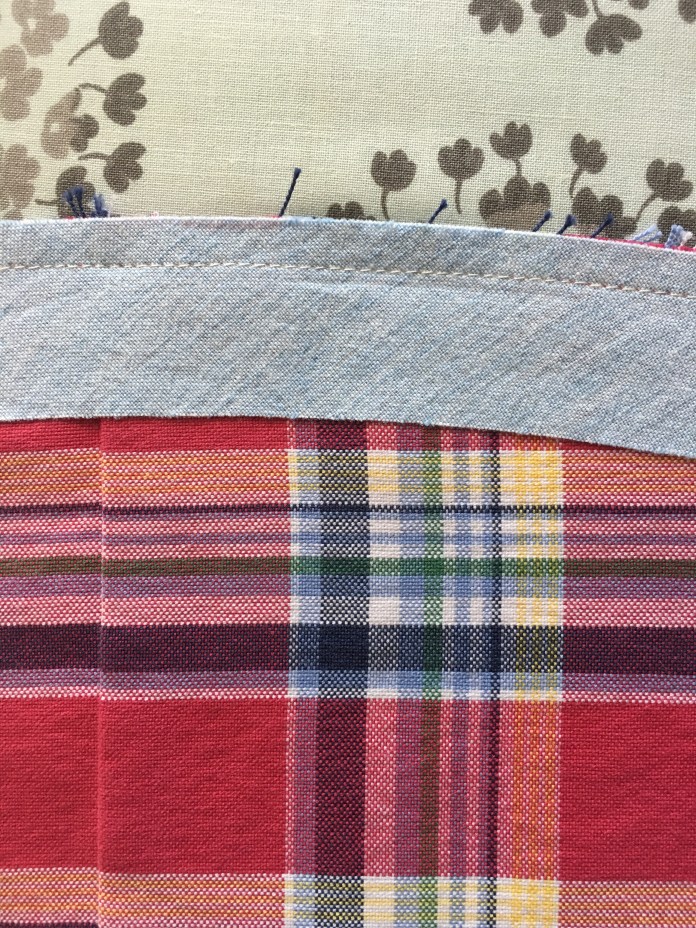 I ended up hand sewing the neck binding down because the double gauze was so fiddly.