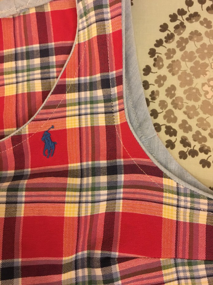 Luckily there was no pocket to contend with but there was the polo player who ended up in just about the right spot. I really like the contrasting blue edge around the neck and arms.