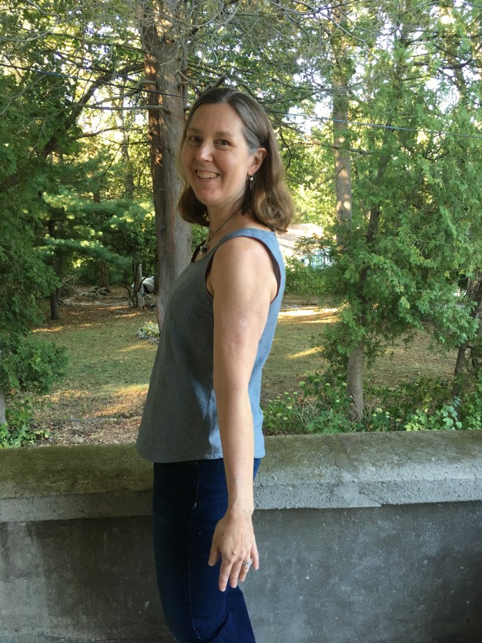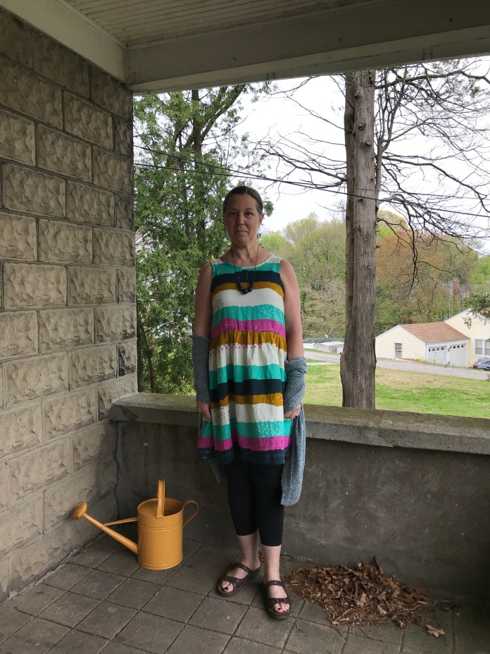 The Liberty and Linen version was basically finished over the winter but I still hadn’t handsewn the lining to the waist, partially because I must have cut the two bodices slightly differently and things didn’t line up for me the way they usually do which threw me off. But I finally sewed everything in late April and it is ready to wear. It is a little sack like but I think will be nice for hotter days or with a jeans jacket or cardigan for cooler days. A good summer date night dress. Maybe a little bare for work although wearing a lab coat makes many less wearable options wearable. I bought the linen last spring and also made a Josephine blouse with the same fabrics.