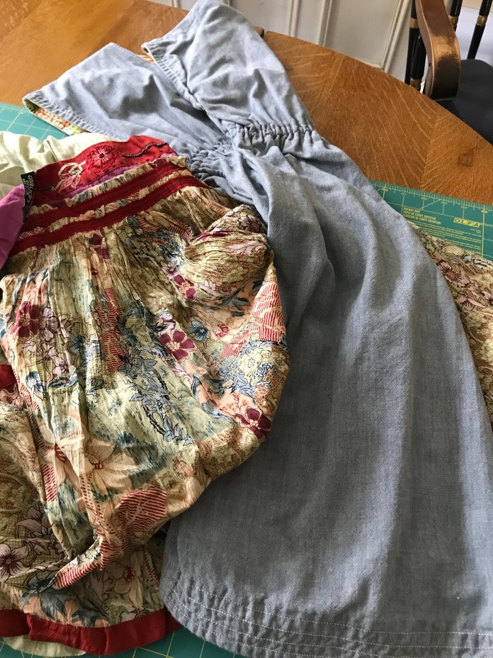and a skirt I purchased about 15 years ago in a little boutique but rarely wore because I didn’t like the waist. I loved the fabric though so held onto it. The other version was in a beautiful cotton double gauze that I purchased on sale from Alewives Fabrics after years of wanting the fabric but not feeling that I could spend the money. This May one of my goals is to finish some of these projects that have languished.