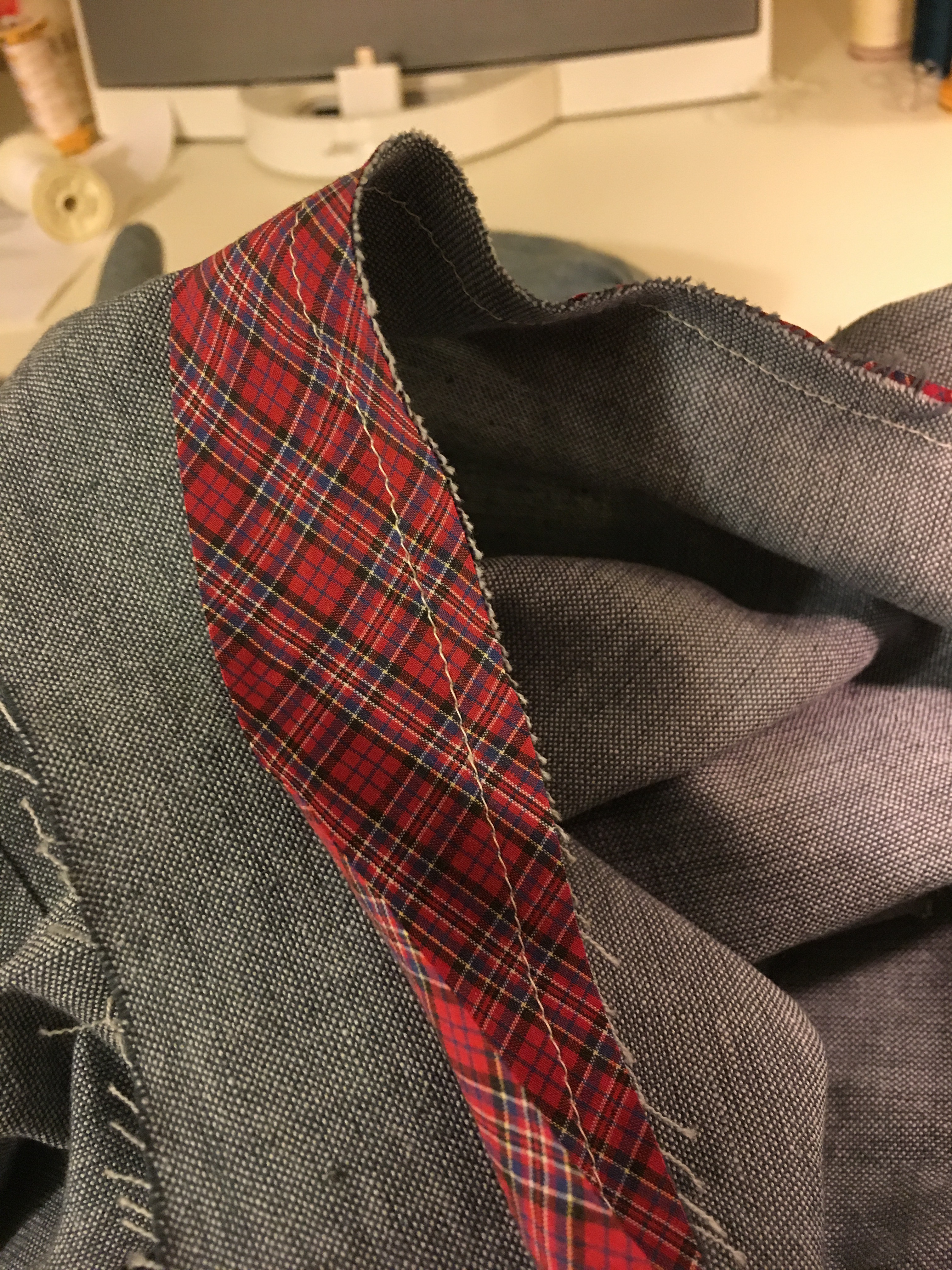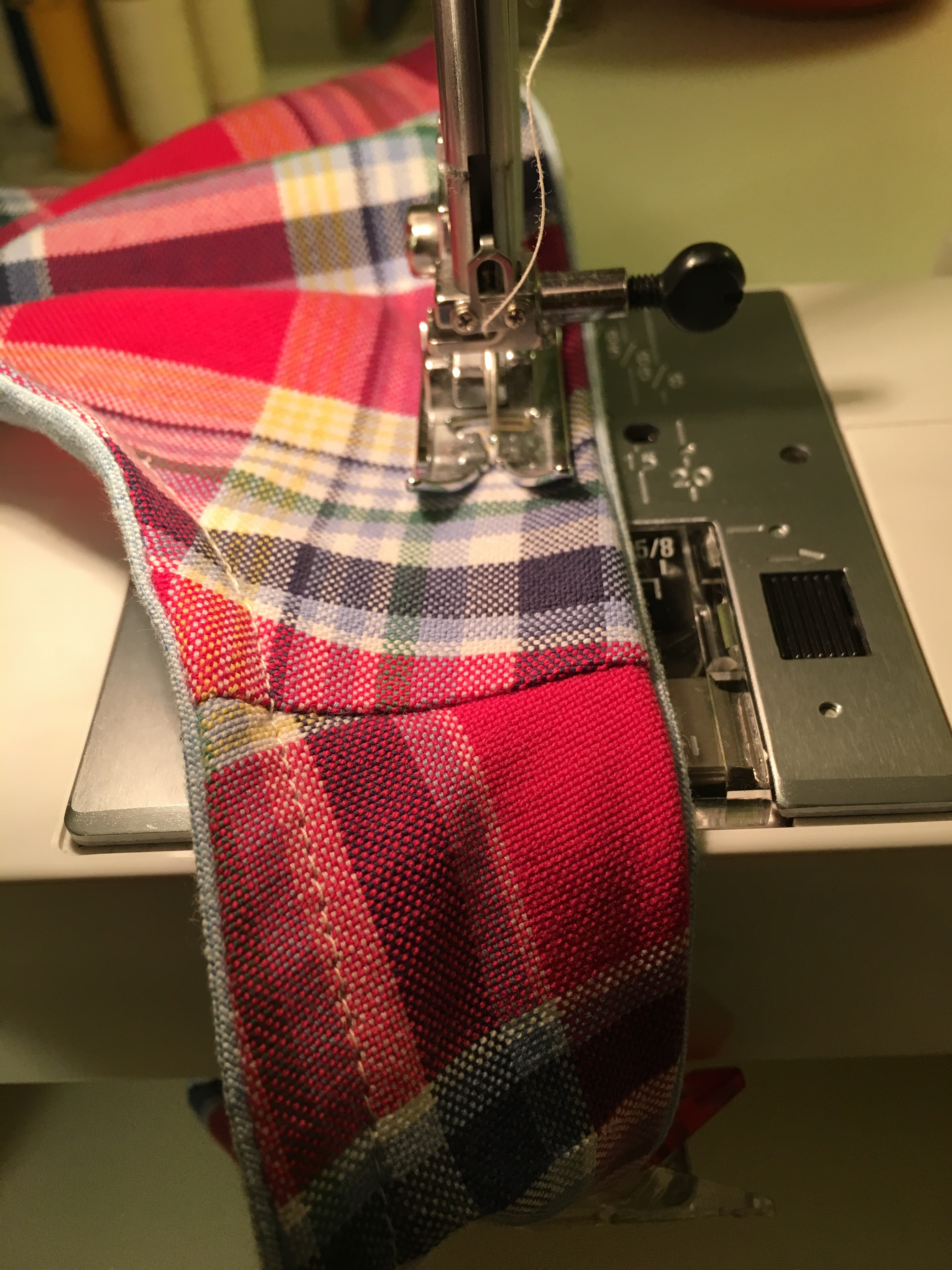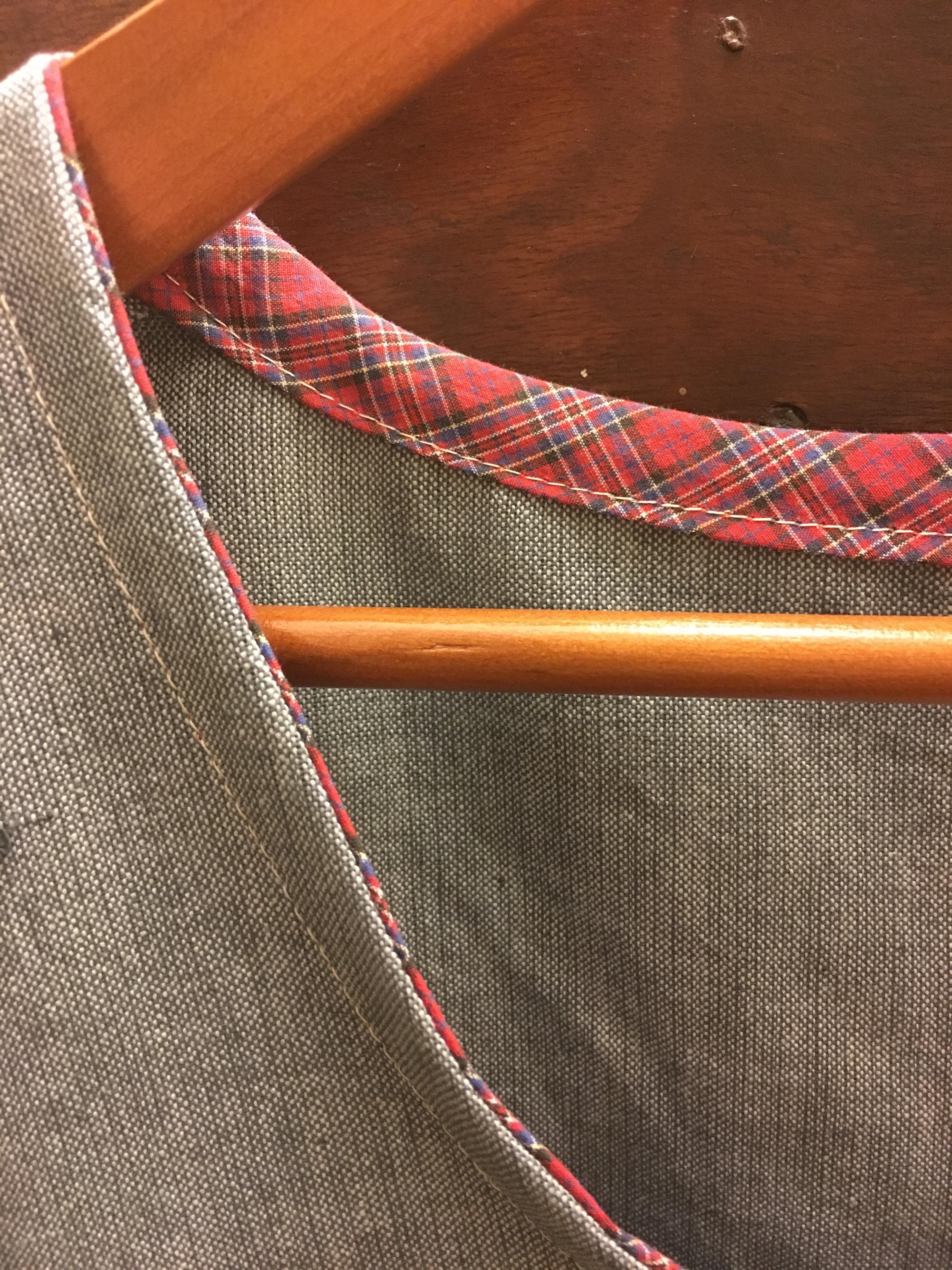 I ended up hand sewing the neck binding down because the double gauze was so fiddly.