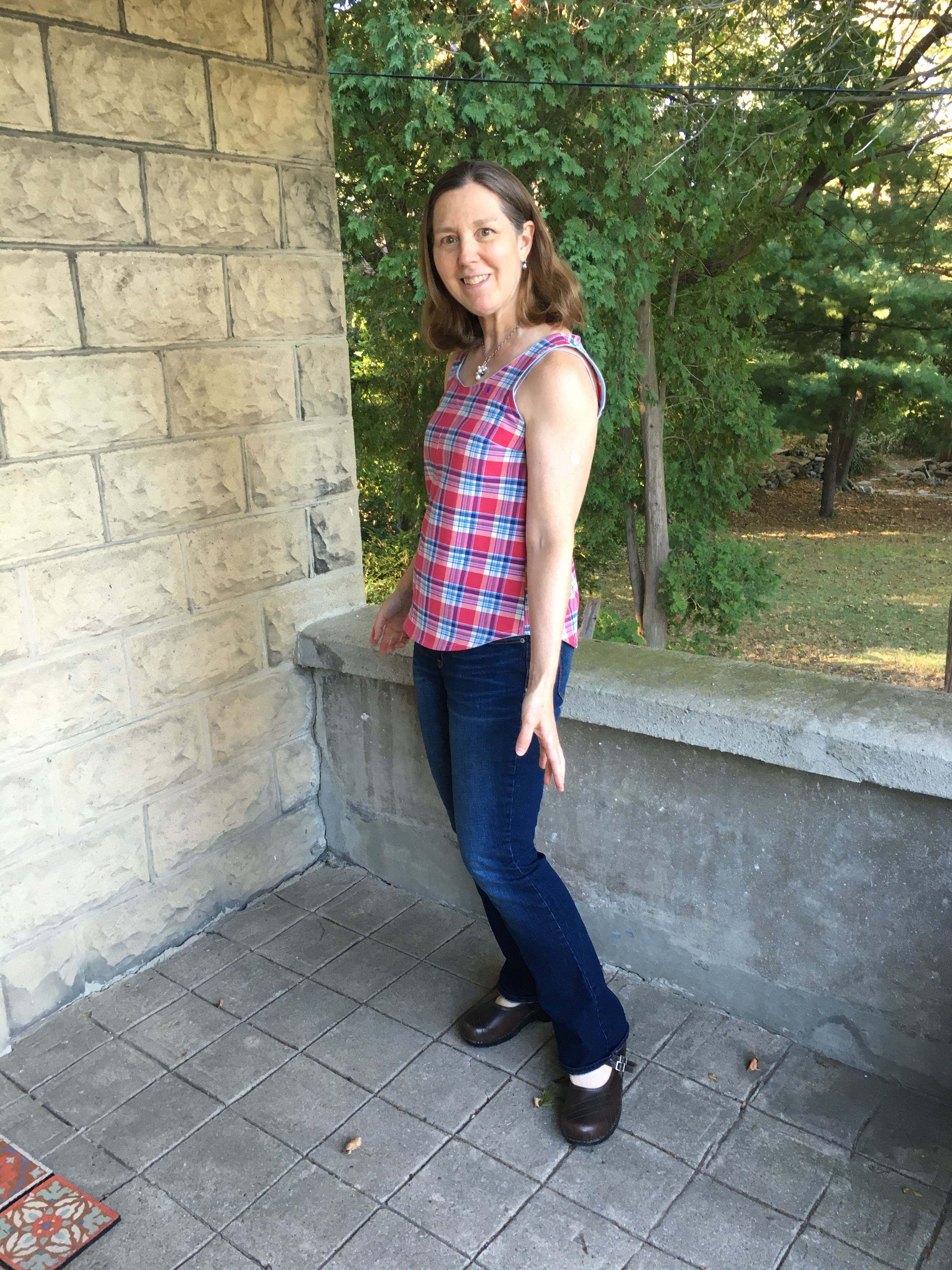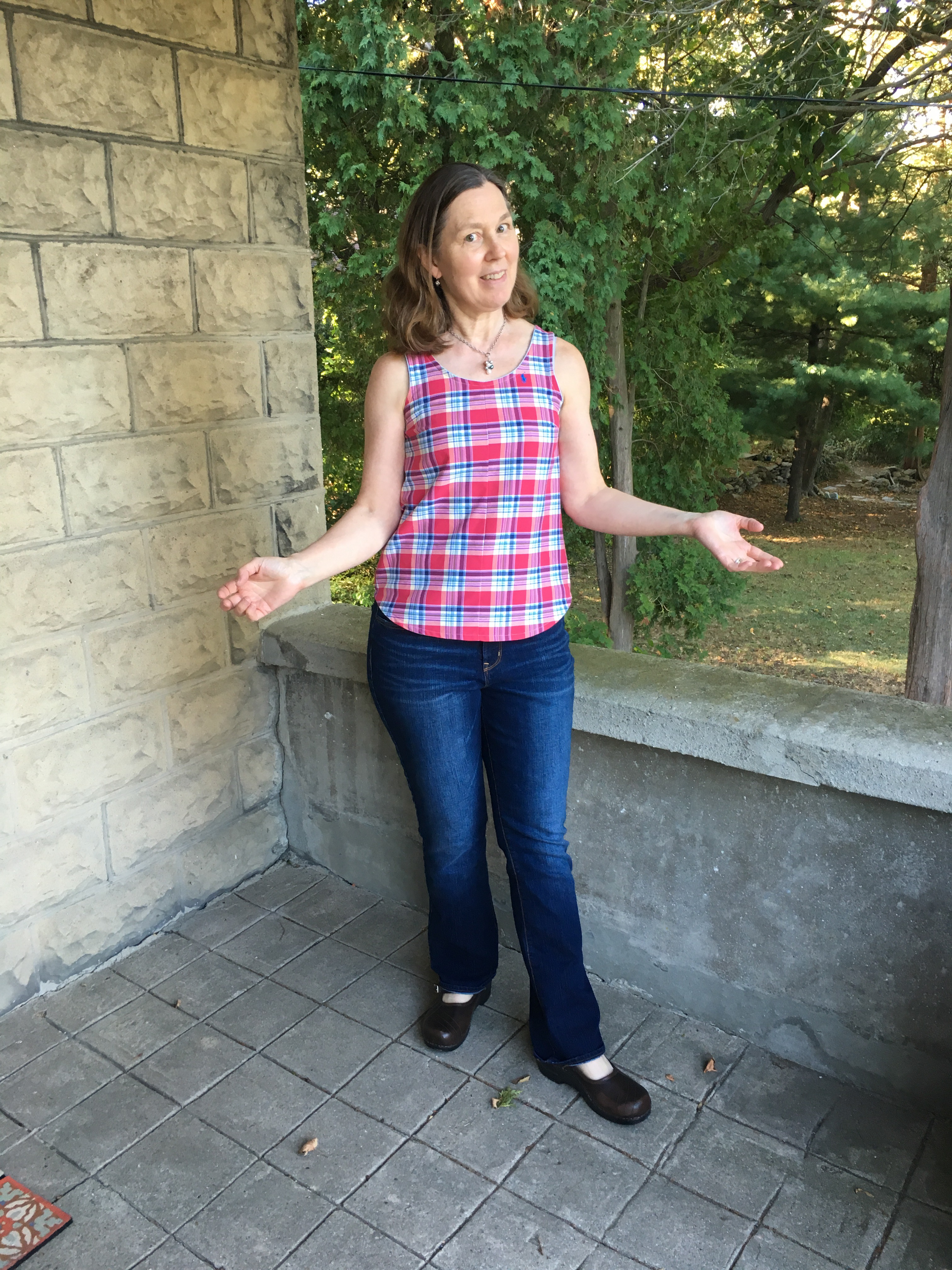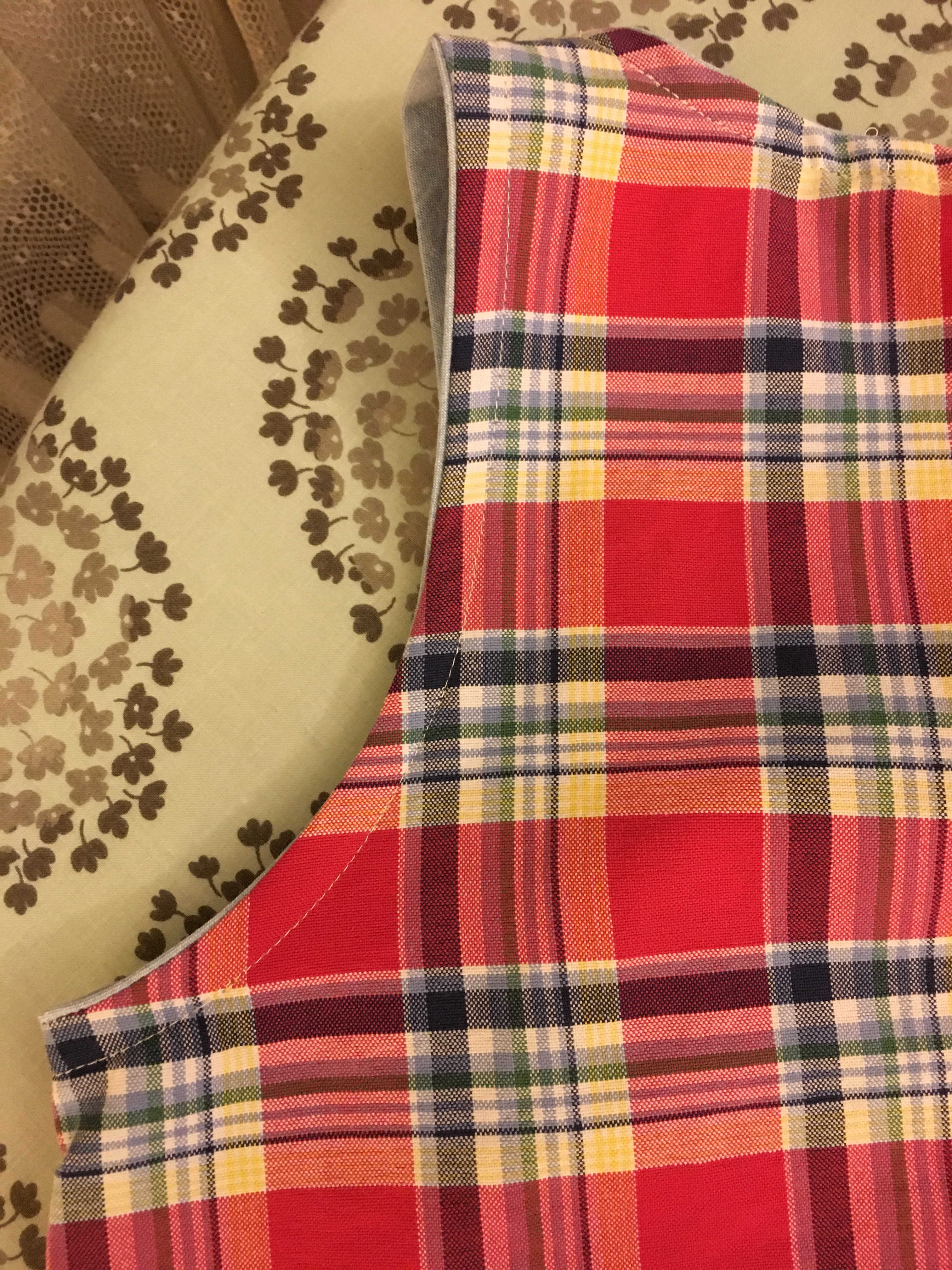 I saved the best for last. I have loved this Cotton and Steel double gauze fabric since I first saw Rae’s Beatrix Blouse. At the time, the price per yard just seemed too much for me but I kept thinking about it and not buying it and then it was basically sold out everywhere and then one day, lo and behold, I found it on sale. I bought 2 yards thinking that I would make a Beatrix Blouse but I didn’t get around to it and then last year when I saw the Gemma with Ruffles, I had the idea to make this dress. I love everything about it. I sort of pattern-matched the sides of the skirt. I didn’t have enough fabric to really pattern-match the bodice but I don’t think it matters. I used two different techniques when I bound the neck and armholes. The binding is visible around the neck and turned under for the armholes. Ribbon bra straps are sewn in because I remembered just in time! One of these days I am going to thread a bunch of snaps on ribbon and have them precut in a dish on my sewing table because you can sew them in right when you add the bias binding. Really easy and it makes wearing tank tops so much easier.